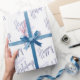 Happy Holidays Script Name Blue White Winter Geschenkpapier