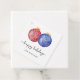 "Happy Holidays" Weihnachtsgeschenk-Tag mit handgemalten, roten und blauen Weihnachtsschmuck. Einfache und elegante Weihnachts-Gefallen-Tag. Aquarellbild von Kristine Lee. Weitere Informationen finden Sie unter www.kristineleedesigns.com