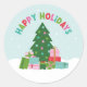 Happy Holidays Tree with Xmas Gifts in Aqua Blue Runder Aufkleber
