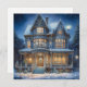 Saisonales Winterhaus beleuchtet auf einer schneebedeckten personalisierten Weihnachtskarte.