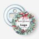 Custom "Happy Holidays" bottle opener for clients personalized with your business logo, the year, a big festive floral wreath, and an elegant red bow. Company promotional supplies for the Holidays, you can order in bulk for your employees or as branding and marketing supplies to promote your store to customers.
