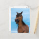 3D-digitale Rendering eines niedlich lächelnden Bucht-Pferdes mit blauen Augen auf blauem Himmelshintergrund