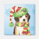 Feiern Sie den Urlaub mit einem niedlichen kleinen Beagle mit einem gestreiften Strumpf und Schal inmitten von Schneeflocken. Eine tolle Geschenkidee für Beagle liebende Familien und Freunde. Gute Ferien!