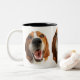Diese fröhliche Tasse zeichnet sich durch das lächelnde Gesicht von Pfirsichen den Hund Hund.