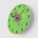 Happy Jumping Kiwi mit Bug-Krawatte Cartoon Design Runde Wanduhr