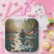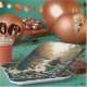 In diesen Tellern der Geburtstagszeitung ist eine Person im Kajak dabei, die bei Sonnenaufgang einen Fluss entlang segelt.