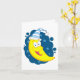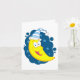 Ein Happy Gelb Moon Gesicht mit einem blauen und weißen Hut. Dieses Design sieht auf dieser Grußkarte wirklich effektiv aus