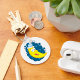 Ein Happy Gelb Moon Gesicht mit einem blauen und weißen Hut. Dieses Design wirkt auf diesem Schlüsselanhänger wirklich effektiv