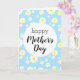 Auf dieser Muttertagskarte finden Sie die Worte "Muttertag glücklich" auf der Vorderseite mit einer niedlichen, dunklen Blume über einem hellblauen Hintergrund. Im Inneren steht "Zur besten Mama gibt es ...", die Sie nach Belieben ändern oder entfernen können.