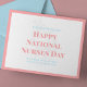 Feiern Sie den National Nurses Day mit einer Touch von Eleganz und Zuneigung. Diese Postkarte präsentiert eine herzliche Verkündigung in sanfter, schattenhafter roter Typografie und erklärt mutig "Happy National Nurses Day" vor einem unberührten weißen Hintergrund. Gerahmt durch einen sanften rosa Rahmen, der einen subtilen Farbtupfer verleiht, vermittelt die Karte eine aufrichtige Dankesbotschaft mit einem dezenten und dennoch wirkungsvollen Design. Dies ist eine perfekte Geste, um den Krankenschwestern, die ihr Leben dem kümmre für andere widmen, mit einem klassischen und zeitgenössischen Design Anerkennung zu zollen.