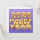 Happy New Year 2026 greeting with golden text on purple background