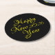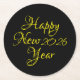 Happy New Year 2026 Black and Yellow Script Runder Pappuntersetzer