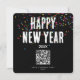 Ein einfaches und stilvolles schwarzes Business oder Unternehmen "Happy New Year"-Kartendesign, das an Ihren QR-Code und Text angepasst werden kann. Passen Sie Ihre Kartenfarbe und -struktur an.