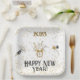 Machen Sie Ihr Silvester-Party mit diesen Tellern, die den Einladungen und vielen anderen Party-Vorräten in unserem Shop entsprechen, besonders! Es gibt Konfetti-Poppers und Gold- und Schwarz-Glitzer-Greifwands, sowie einen Wecker mit vielen Sternen, Konfetti und Bändern, die daraus hervorspringen. Der Teller hat einen vergoldeten Glitzer, der überall verstreut ist. Es hat das kommende Jahr an der Spitze in Gold, dann Happy New Year in schwarz.