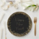 Eine schwarze Happy New Year Platte mit einem gedruckten Gold Glitzer Design und einer Nachricht, die Sie anpassen können, um es zu Ihrem eigenen. Editieren Sie mit dem Texteditor Ihre eigene Tafelware für Ihre Feier.