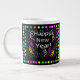 Sie können nun meinen zeichn "Glückliche Neujahrsgrüße" bewundern, der auf diese Jumbo-Tasse hinzugefügt wurde. Im Text steht: "Happy New Year!" mit einer zusätzlichen Touch von Regenbogenkonfetti und Party-Streamern und Regenbogenpolka-Punkten, die diese Jumbo-Tasse für Neujahr schön aussehen lassen.