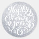 Happy New Year Modern Calligraphy Silver Glitzer Runder Aufkleber
