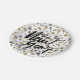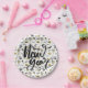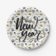 Happy New Year Party - weißer Hintergrund, küssen Sie mich, Bogen-Krawatte, Silber- und Goldhut, Champagnerflasche und Drink, Mitternacht-Uhr