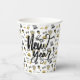 Happy New Year Party - weißer Hintergrund, küssen Sie mich, Bogen-Krawatte, Silber- und Goldhut, Champagnerflasche und Drink, Mitternacht-Uhr