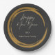 Happy New Year Text Gold Fleck Ring dunkelgrau Pappteller