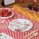 Die Teller des Blumengartens Osterbrunch Party mit Aquarellwald und Ostersonnenhütte.