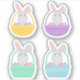 Adorable Aufkleber Set (4 Aufkleber) mit Ostereiern und einem Osterhasen in einem Korb. Ideal für Ostern!