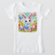 Lebhafte Farben, perfekt für Ostern, süßer Hase auf einer Wiese mit Schmetterlingen und Regenbogen. Toll zu paaren mit Osterrock oder Shorts.