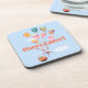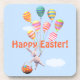 Getränkekopfer mit meinem Kunstwerk eines niedlichen kleinen Kaninchens, das auf einem Haufen gestreifter Ballons festhält, die in den Himmel treiben und dabei einen Korb voller Ostereier tragen. Der Text "Happy Oaster" steht für "Anpassbar".