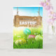 Teilen Sie den Geist des Osterurlaubs mit Ihren Lieben, indem Sie ihnen diese schöne Grußkarte mit blauen, rosa und grünen Ostereiern und dem Osterschild schicken. Lass ihnen, dass sie geliebt und erinnert werden. Wenn Sie Hilfe benötigen, kontaktieren Sie mich bitte unter shabnamahsanatzazzle@gmail.com