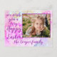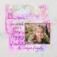 Hübsche Blume aus Peony vereinen sich mit einer schönen, weichen Palette von Frühlingsfarben. Dieses Blumendesign hat ein Aquarellbild und ist in Rosa-, Blau- und Gelbtönen gehalten. Ihr persönliches Foto ist die krönende Touch, um Ihre personalisierte Osterkarte zu kreieren. Der Gruß an der Vorderseite lautet: Wir wünschen Ihnen ein frohes Ostern. Es ist einfach, Ihren Familiennamen zu dieser schönen Postkarte hinzuzufügen.