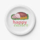 Die originelle Marker-Illustration eines leckeren, glasierten Schinken aus Scheiben auf einer Platte mit Ananas und Kirschen, mit HAPPY EASTER in einem lustigen rosa und grünen Schriftart. Ideal für das Osteressen!