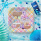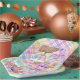 Eine bunte, festliche Platte aus viereckigen Papieren, die in fröhlichen Osterfarben und Pastellfarben gehalten ist