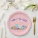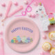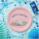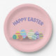 Happy Ostertext mit bunten Ostereiern auf rosa polka dot hintergrundmuster design.