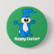 Frohe Ostern niedliche und aufgeregte Cartoon-Hase-Taste. Ein großartiger Knopf für jemanden, der Ostern feiert. Es enthält ein Cartoon Kaninchen mit einem aufgeregten Ausdruck auf grünem Hintergrund.