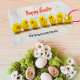 Eine Gruppe niedlicher Osterhühner wünscht Ihnen ein glückliches Ostern.