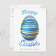 Personalisierte Osterpostkarten mit blauem Osterei und anpassbarem Text, auf dem Sie Ihren Familiennamen auf weißem Hintergrund hinzufügen können