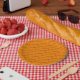 Eine Papierplatte mit einem Happy Oaster Skriptmuster in Orange und Braun. Passen Sie den orangefarbenen Hintergrund einfach an.