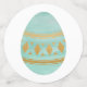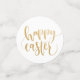 Frohe Ostern in Gold-Script, Pastelleier und ein Goldenes Ei auf Konfetti.