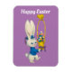 Auf diesem Urlaubsmagneten steht ein niedlicher Hase mit einem großen Korb voller farbiger Eier und einem Küken, das auf dem Korb sitzt. Mit der Happy Osterbotschaft würde dies eine großartige Dekoration machen oder als Geschenk für Ostern!