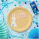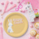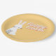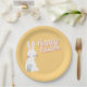Happy Ostertext mit sonniger Orange Pappteller