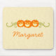 Glückliche Kürbis Wirbel Halloween Mousepad mit einem Trio von lächelnden geschnitzten Kürbissen und einer Kaskade von Wirbel und Punkten. Dieses lustige Mousepad wird Ihrem Arbeitsbereich einen charmanten Halloween-Flair geben! Einfach zu anpassen, fügen Sie einfach den personalisierten Text Ihrer Wahl. Schriftart und Textfarben können so geändert werden, dass Ihre Vorlieben Anzug werden, und das Design elegant kann verschoben/verändert werden, um mehr oder weniger Text aufzunehmen.