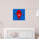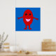 Ein Cartoon einer lächelnden roten Traube mit glänzenden schwarzen Augen und einem rosa Mund stehend vor einem blauen Hintergrund mit offenen Armen. Das ist ein lebendiges, buntes Poster, das einem ein Lächeln auf das Gesicht bringen sollte.