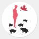 Bon repas, sticker à thème végétarien - un homme gras et cochon d'ange rose, thème d'art pour vous faire penser à ne pas manger d'animaux.