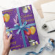 Stilvolles Happy Retirement Packpapier. Eine farbenfrohe Geschenkpackung, die mit einem Eistücher mit einer Flasche Sekt, Flötengläser und Ballons ausgestattet ist. Eine tolle Verpackung für die Familie, Freunde und Kollegen, die in Rente gehen. Anpassen, indem Sie den Titel des Events ändern, dann personalisieren, indem Sie den Namen des einen Ruhestand hinzufügen.