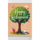 Eine fröhliche Abbildung mit einem großen, lebendigen Baum mit üppig grünen Blätter und rosa Blume. Unter dem Baum entfaltet sich eine gemütliche Szene mit einer dampfenden Tasse Kaffee und einer Tasse farbenfroher Stifte, die Kreativität und Entspannung nahe legen.