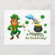 Happy Saint Patrick's Day Leprechaun Regenbogen Postkarte