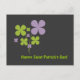 Glückliche grüne und lila Kleeblätter auf schwarzem Hintergrund