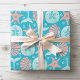 Die Weihnachtsgeschenkpackung zum Thema Strand bietet ein Wassermuster aus Muscheln (Starfish, Sand Dollars) und Wal-Schwänzen in hellblauen und korallenfarbenen Tönen auf tropisch türkisfarbenem Hintergrund. Original-Kunstwerk KL Stock.