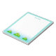 Niedliche, fröhliche Frösche mit Rahmen auf weißem Notepad. Frösche symbolisieren viel Glück!