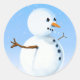 Happy Snow man Aufkleber. Melvin der glückliche Schneemann, mit einem knackig blauen Hintergrund und Schnee,